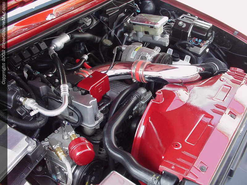 Not wanting to do much with the engine, John decided to mess a little with the air flow and pretty things up a bit. With a billet accessories and some color matched accessories, the chrome Sportruck specialties intake would show nicely. Helping with the throaty sound, a 2 ½ inch Magnaflow cat back exhaust system would be installed.