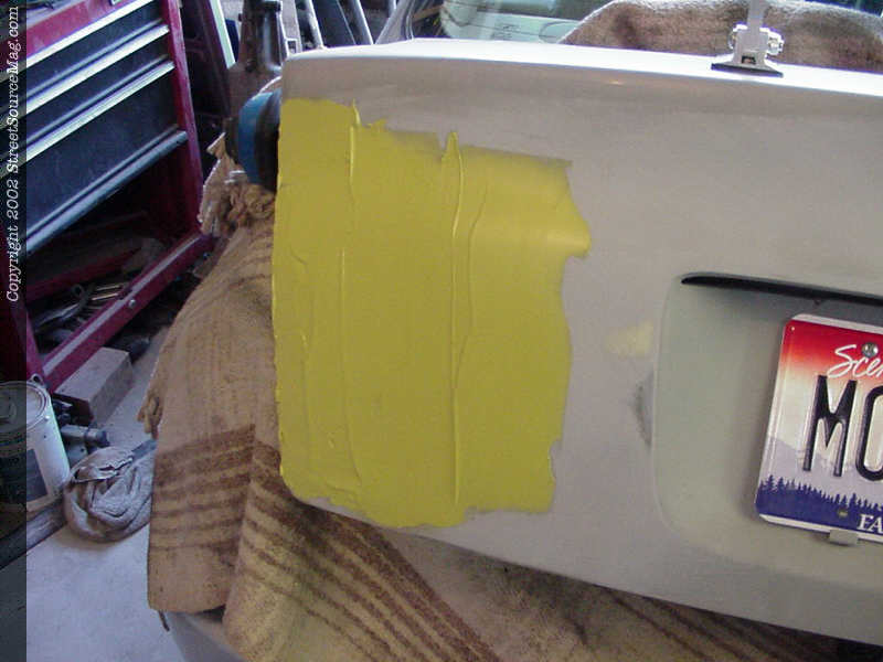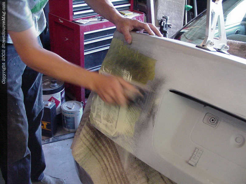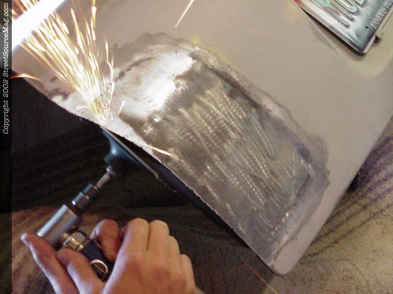 13. To keep everything smooth and the body work clean, a thin layer of bond is needed over the filler and grinded areas.