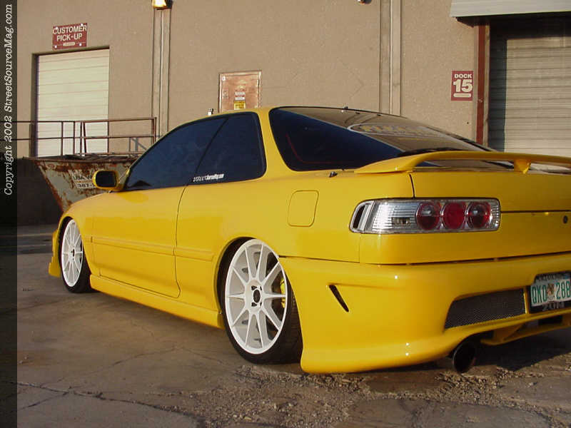 Now having the beginning of a dream, the Integra would take on a long list of modifications. Feeling that the car needed a much more aggressive look about it, Regan removed the stock bumpers and bolted up a Wings West Aggressor front bumper and side skirts along with a Andy's Autosport combat rear bumper. Not yet impressed with the curves, an Aerogear fiberglass predator hood would be installed to help grab attention.