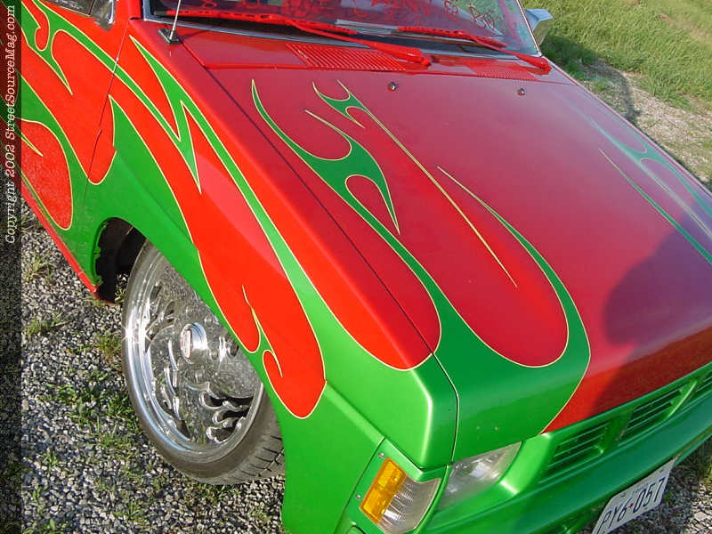 For rolling stock Kyle called upon his buddy "discount Joe" to help him find the perfect wheel/tire combo. Joe picked out the Boyd Coddington el Diablo's for Kyle and had them shipped out to him, but unlike most new comers Kyle went big on his wheels, mounting up 18's in the front and 20's in the rear both wrapped in Nitto 550's.