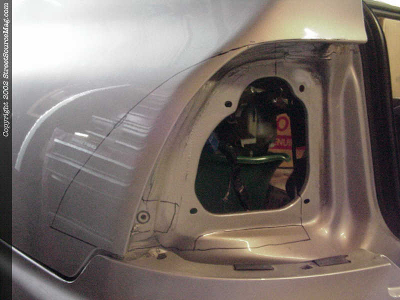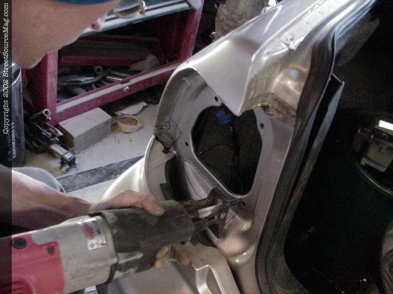 1. There are few people in the scene that will tear into the quarter panels of a newer car, but hell if it's going to make things look better why not? The first step in this long tedious process would be to remove the outer taillights. Inside the trunk there are a couple of panels you will need to remove in order to remove the 4 bolts per light. Once the light is unbolted unhook the lights themselves.