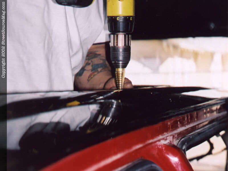 After test fitting the frame, John trims a few areas for a nice snug fit. With the frame now in its proper place, the holes needed to be drilled to securely mount it in place. The frame is then pulled back off and a bead of silicone is ran around the perimeter, ensuring a proper seal.