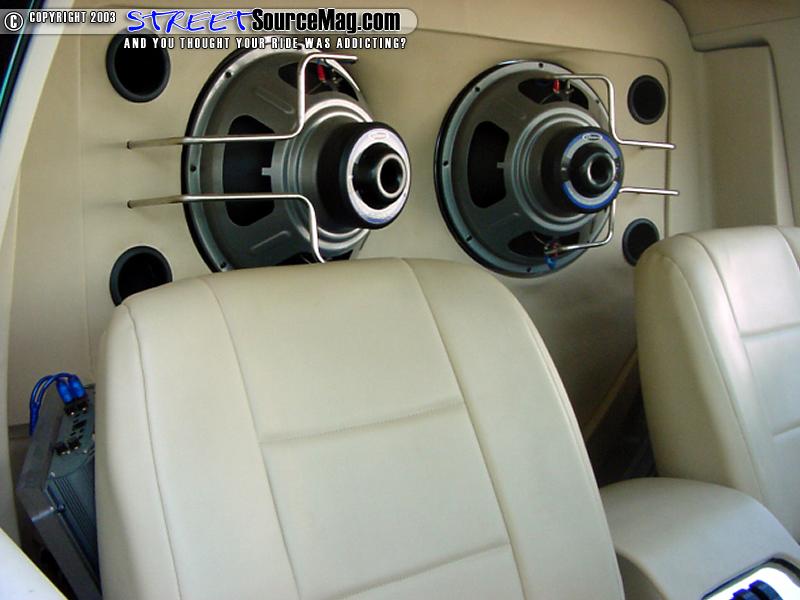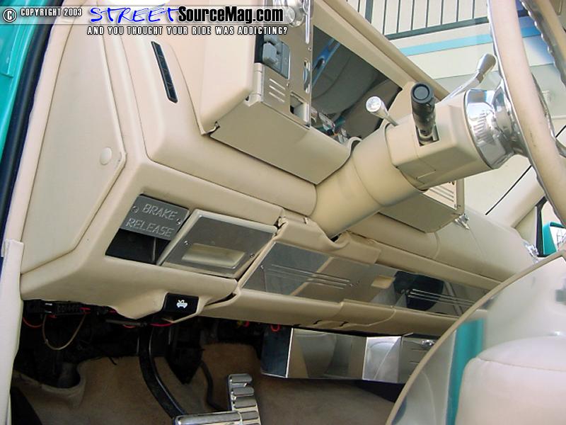 Moving to the interior this male stripper wanted something classy but eye catching. Mitch let mikes trim shop play with this part of the truck. While at Mike's they wrapped every piece of plastic in Cadillac cappuccino cream leather.  Working on the interior Mike took the factory seats and chopped them down for a more low profile look.