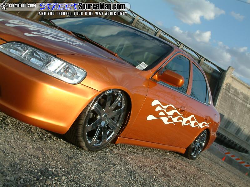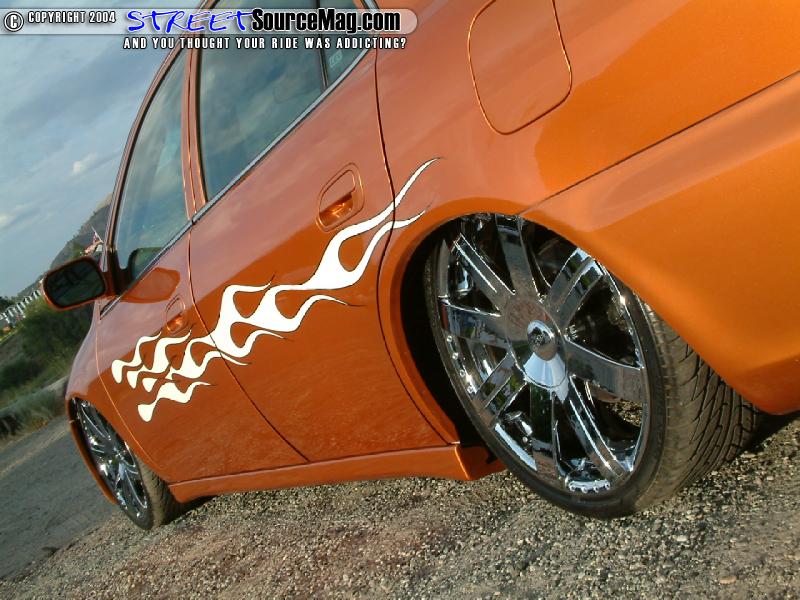 The taillights would then be swapped out with ’00 taillights and the inner trunk lights would be shaved. To bring out a smoother appearance down the lines, the side moldings would be shaved while another club member, Chad Mauer, would mold a custom license plate box into the trunk.