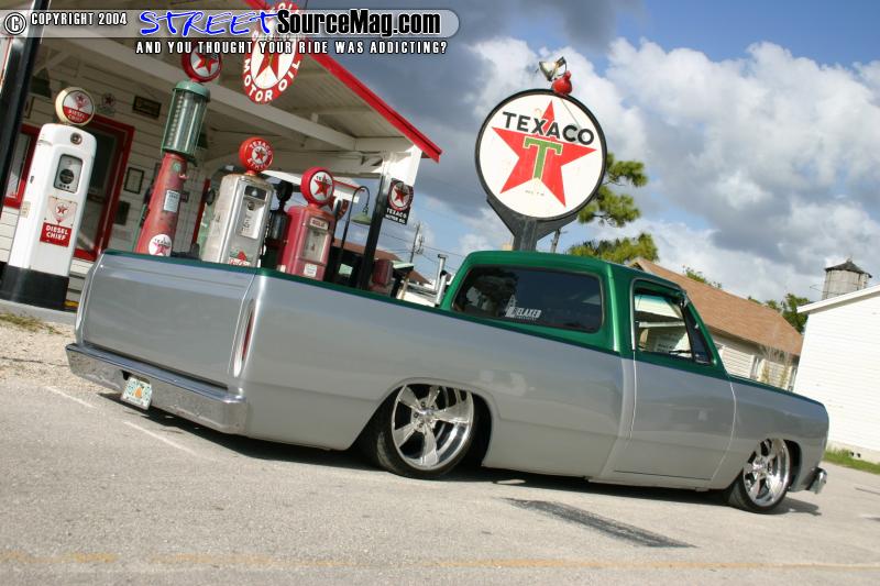 Getting things moving, the rear frame rails would be notched over the rear end with 1/8th plate by Tommy’s of Vero Beach. A set of 33-inch Chassis Engineering ladder bars with panhard bar would then be installed to help bring the rear down and help keep things stable.  For adjustability, 2600lb Firestone bags front and rear would be installed along with the proper valves, compressors and air tank. Up front 2-inch DJM drop spindles would help bring things to a lower level. To help leave more room upfront for the 20-inch Intro Vista wheels, the battery would be relocated into the bed. He’d have 245/35’s Nitto Extreme 555’s upfront while the rear Intro’s would be wrapped in 275/30’s.
