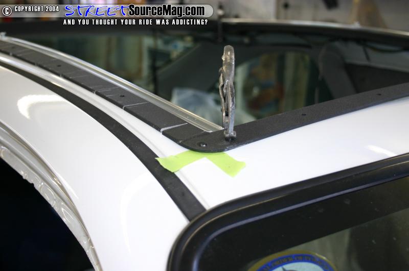 Otherwise the rag top will stick up in the corners and won’t fit at all. The reliefs will need to be cut an inch apart along the outside of the rag top frame. You will then be able to bend the frame assembly to fit the contour of your roof. The roof was then fit again and removed. Once you have your final shape and are ready for the top to go in there are some steps you should do before hand.