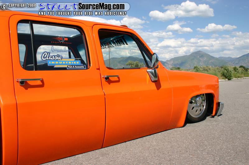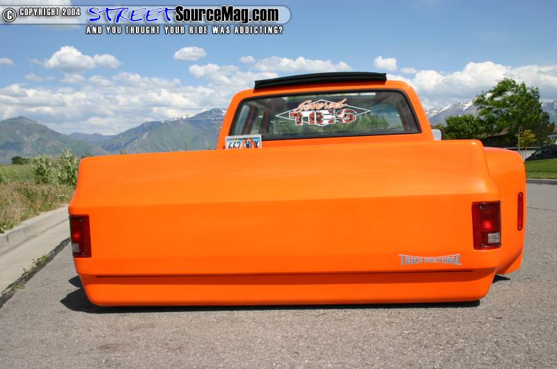 A Trenz billet grille was bolted up in the front along with H4 headlights. Out back a smooth roll pan was molded in. On to paint, Ron would have Eric Bostain at Trick Kustoms lay down the Tangerine Candy PPG paint over a white base and spray on a few nice coats of clear. Although some might not agree, keeping the door handles and mirrors would prove to be a great decision on Ron’s part.