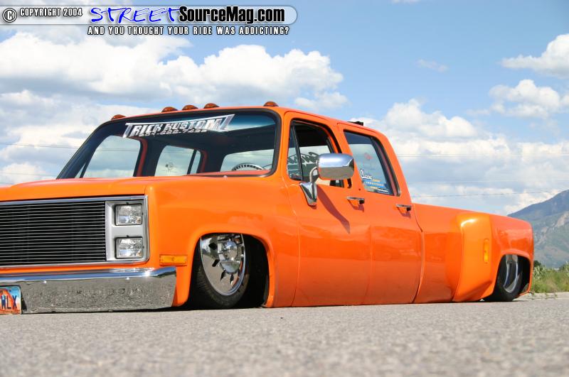 Like many others have done and will do in the future Ron decided to hook up with the guys over at Trick Kustomz. After re working the body drop it totaled a whopping 4 ½” still using the stock floor. While it was there Trick Kustoms also shaved the keyholes, tailgate, sectioned and stretched the rear fenders out, built the bed floor, shaved both the gas doors, and dropped the motor 4” to clear the hood.