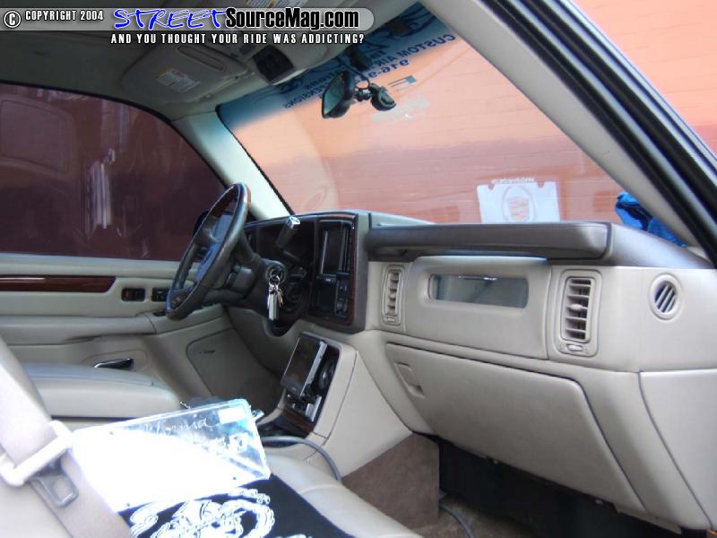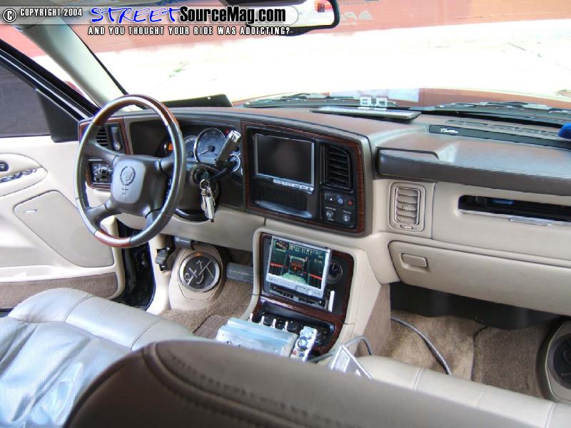 Less than a month passes by and Mike is already on his way to see his boy Doug at Paradyme Car Audio in Sacramento, Ca. where the Doug’s team of installers took redoing the Caddy’s stereo system. First thing added was 8 inch in dash Pioneer screen and head unit along with 7-½ inch flip down screen. Doug’s team then installed a Playstation 2 system into a custom console where Mike’s passenger airbag use to be.