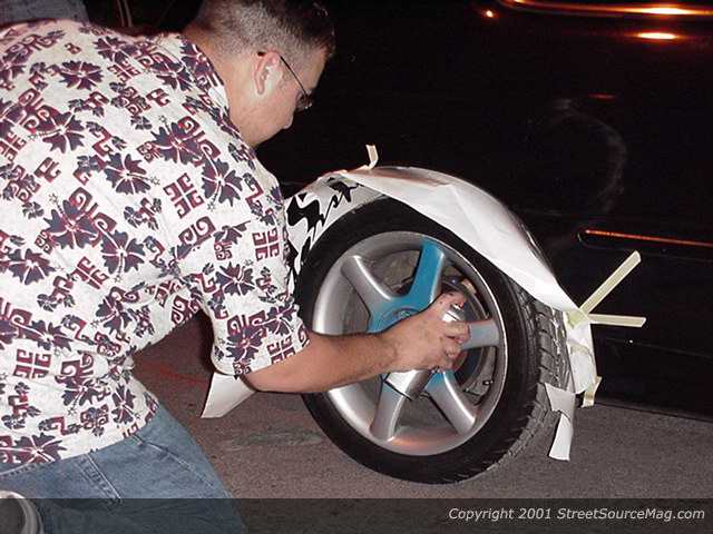 As pictured, this poor sap was talked into spray painting his rear rims blue with orange center caps and the front rims orange with blue center caps. They had him soooo worked up that he even ended up spraying his grille orange, and his door handles blue! Although he ended up happy with the turn out, it will end up being a laugh everywhere it goes I’m sure. I guess when asked about the overspray on the tires, he was told that it would wipe right off cause he armor all’s his tires. Yes….yes….it is cruel and funny as hell. But this individual is a prime example of why you use your own ideas. So even though this article doesn’t make much sense, I hope we all learned something here today. I know I learned that after staring at a blank screen for hours can jolt some kind of topic to discuss. Anyway, I’m done blabbing so till next month I’ll be looking for the funny things in “minitruckin’” life to discuss in future issues.