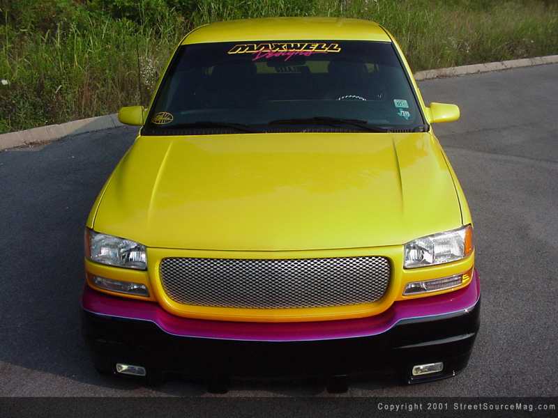 For the last 16 years, Pat has been living out part of his probation sentence – to build show trucks that turn heads everywhere. Not only does the ride Pat build need to win shows, but it has to be good enough to be a rolling business card for his graphic arts business, Maxwell Designs. In late 1999, Pat picked up a brand new Sierra. Six months and $20,000 later, people would come to recognize Pat at every event he attends.