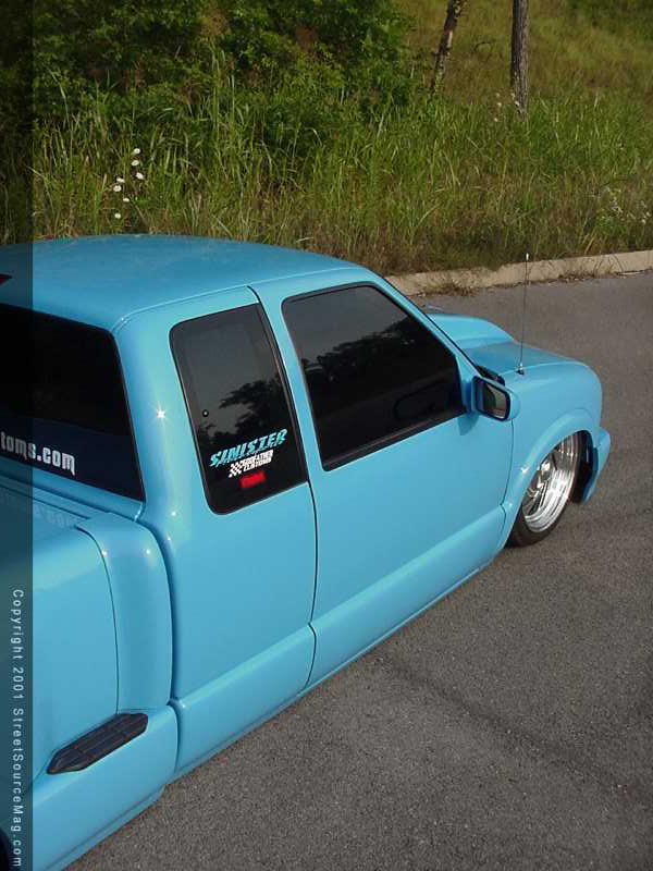 What started out, as a normal daily driver truck would soon turn into Korey’s next big project. You see, a telephone pole decided to jump out in from of Korey and damage his new truck. Since it was already damaged, Korey decided it was time, as before, to do some cutting. And that’s what he did. Starting with the frame, Korey needed to make room for the new frame laying stance he was looking for. In the rear, a big monster notch was performed. Korey removed most of the springs from the pack and left it mono springed. He then welded in new airbag mounts to get the rear off the ground and over bumps. Factory shocks smooth things out in the back. Up front, Bell Tech drop spindles were installed along with a Red’s hydraulic setup for instant up or down when Korey needed it. Laying frame was good, but knowing Korey and his previous rides, laying frame wasn’t going to cut it. So, Korey body dropped his S-10 four inches to lay it all the way down. Sitting at a new height level, it was time to start massaging the outside to make it more presentable.