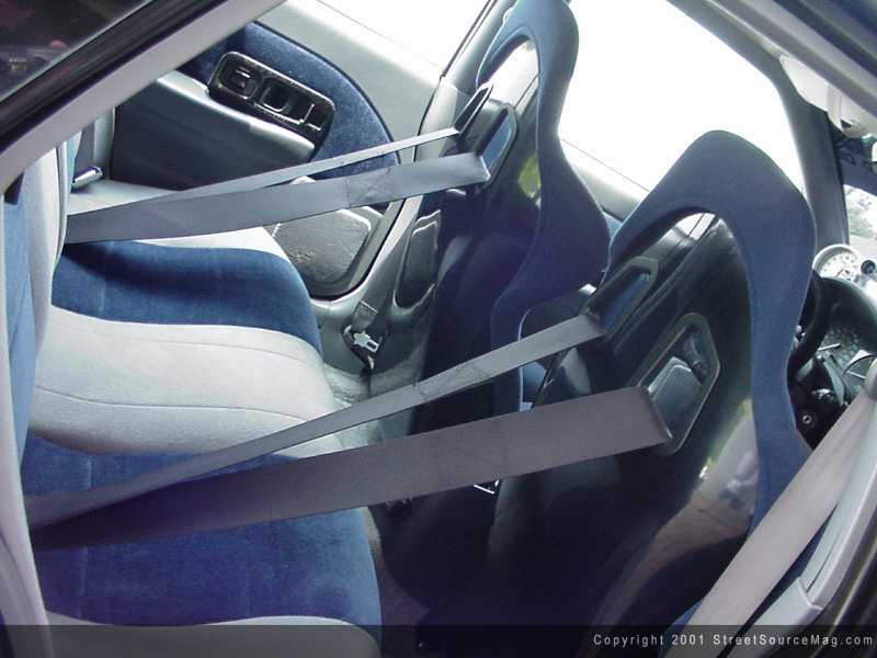 With everything complete except for the interior and stereo, Dennis turned to his friend Tim of Dropworks in Fredericksburg, VA. Tim spent a lot of time in the car welding and measuring out the seat brackets to bolt up the Sparco EVO seats. With the seats now bolted in, the interior was set up with velour inserts which were stitched by Keys Upholstery. The next step would be to remove the stock steering wheel and seatbelts and replace them with products provided by Sparco.