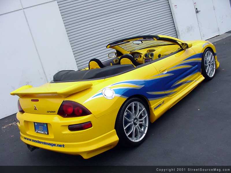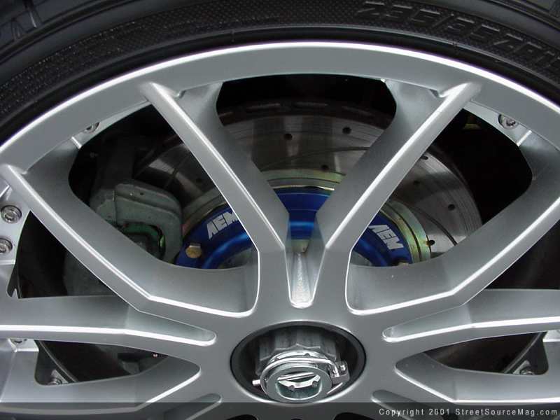Beneath the Spyders newfound exterior appearance, you will find the next step in the transformation of this Mitsubishi. Robert would ditch all of the stock suspension items only to replace them with some of a more high performance matter. A set of Koni struts would provide a smooth ride while surrounded by a set of Ground Control adjustable coil overs for the low stance. The coil overs can be found equipped with Eibach springs on all four corners. For added performance, the stock bushings where replaced with those provided by Energy Suspension. With the new suspension, it would only make sense to upgrade the stock binders. Ditching the factory calipers would leave room for the slotted and cross-drilled AEM rotors. The front would house 13 ½ inch rotors while the back utilized 11 ½ for ultimate stopping abilities.