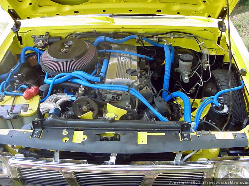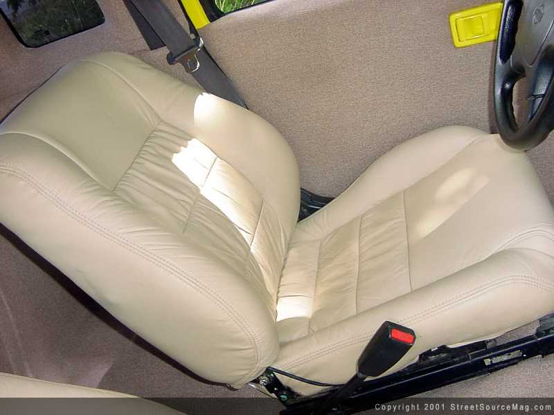 For seating pleasures Chris covered and installed Honda Accord seats wrapped in camel leather. With the interior and body complete Chris had to do something with the little 4-banger he calls an engine. To start the engine off Chris polished the valve cover and other aluminum pieces, also Chris added braded hoses, wire loom and added a K&N air filter to add some character.