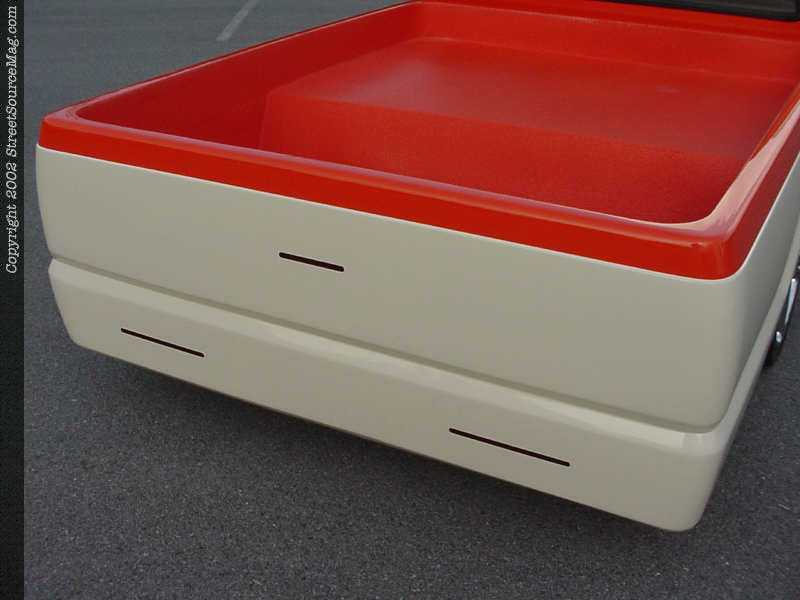 Eli shaved the wiper cowl and smoothed the bed seams as well as the bed corners. The gas door was also shaved and the filler moved to the rear fender. Then, Eli shaved the tailgate and the taillights, and replaced them with Hagan flush mount LED's.   Eli also tubbed his bed and used spray in bed liner for a clean look. Then Eli installed a monster sunroof, to allow plenty of light on those warm summer days.