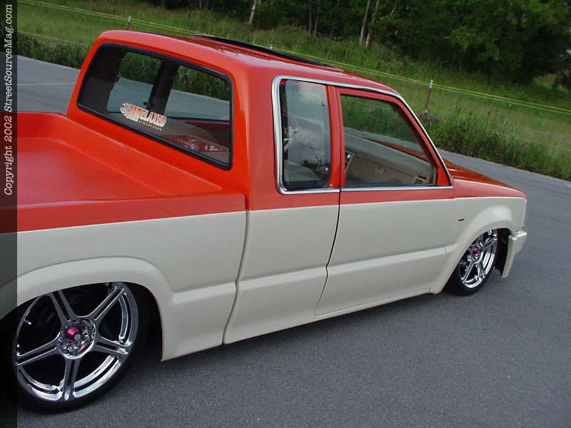 Next, Eli decided he wanted his doors to open backwards, so he gave them the rod-inspired suicide door treatment. Eli also went with a rod-inspired look and shaved his Mazda clean of door handles and rear bumper.