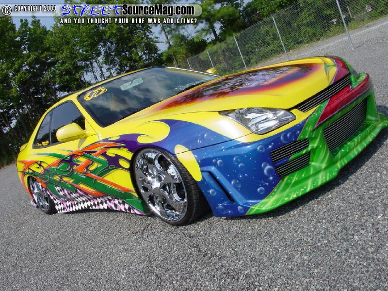 Getting down to business, John wanted the down and dirty look over the raced out style so he made a few calls and went to work laying his Prelude out using components from Blowjax. At all four corners, he installed Blowjax air cylinders and 3/8" electric valves and line for instant, on-the-fly, adjustability. John also installed custom anodized brackets in the rear for added show points. In the back sits a three gallon air tank along with three, one-gallon tanks hidden behind the bumper for six total gallons of reserve air ready at anytime.