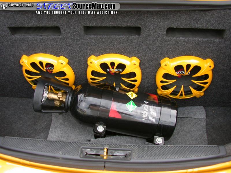 Since this would be Bob's daily driver, a kick ass system would be a necessity. Getting things going would be with an Alpine head unit with flip out monitor installed into the dash. Next a collaboration of Kicker components would be installed. A set of 6x9's, tree 8-inch Kicker comp VR8's, and two 6-inch focal speakers would be installed.
