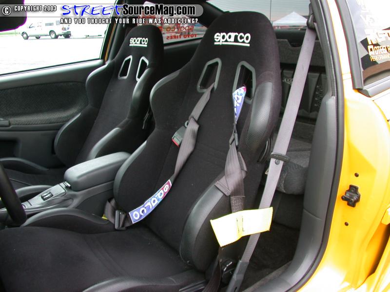 Continuing through out the interior you will also notice a Sparco steering wheel with race kit and racing harness. Autometer 5" Tachometer, 2-1/16 oil temp gauge, 2-1/16 air fuel gauge and dual pod pillar have also been installed to keep in eye on the engine through rough riding.