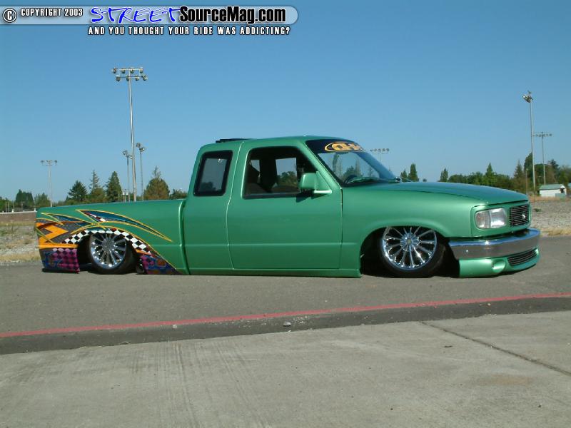 This wasn't low enough for Toms taste, as of yet, so Tom would then perform a 3-½ inch body drop. With the body down to a now much improved level, the rear would receive a set of 2500 lbs Firestone bags along with a set of 2600 lbs Firestone bags up front to help get the body up off the ground. Making sure the bags get the necessary air, four ½ inch Parker electric valves with ½ inch air line would be installed through out. Making room for the 17 inch Alba Reflections wrapped in Eagle Goodyear tires upfront, the battery would need to be relocated in the cab under the speaker box.