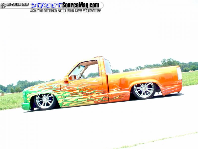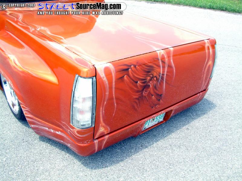 With the body complete, Ike would take the Chevy to Scott Shopp of Fat Cat Customs of Manford, OK. While in Scott's hands a Tangerine House of Kolor paint would be laid down. Needing more attention form show goers, Scott would then lay down a set of Planet Green and lime gold flames pinstriped in Passion Purple and Indigo Blue. Ike was now closer to what he had envisioned that very day he had bought this project.