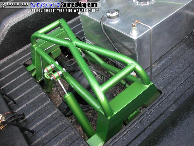 Now it was time to associate the truck with the asphalt. With the help of John Goodwin the truck began a new transformation. Using 2x3 square tubing the truck was c-notched with a fabricated custom 4-link.