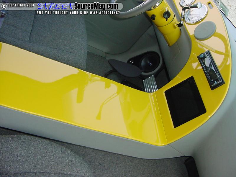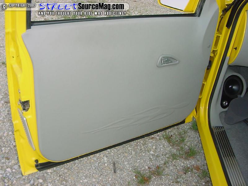 For seats Kyle grabbed the first pair of "junk-yard specials" he could find and had Greg's upholstery stitch them up in gray tweed. Along with the seats and dash Greg smoothed out the door panels and headliner and wrapped them in matching vinyl.