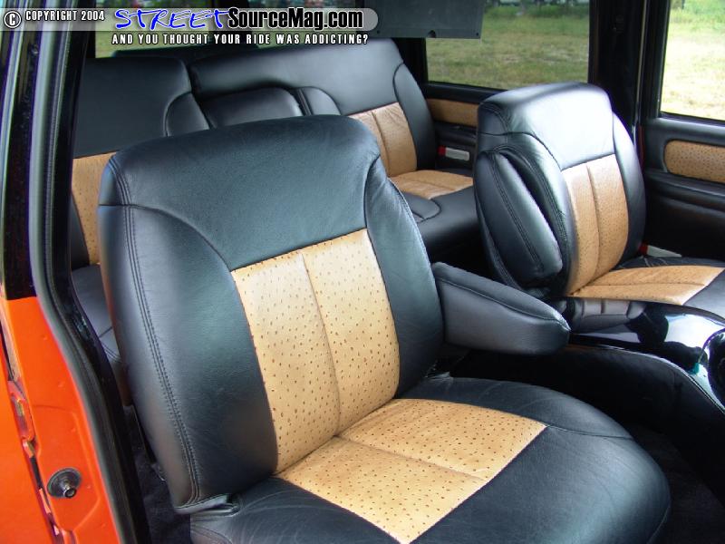 The headliner would be wrapped black and all other interior pieces would be smoothed and painted. The seats would then be covered with a Katzkin leather kit with ostrich inserts. Billet specialties vintec steering wheel would help pull everything together.