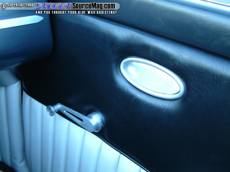 With the exterior complete and the roof now off, Chris would need to continue the old school roadster appearance from the inside. For starters the dash would be smoothed out, painted and housing a custom gauge cluster utilizing Autometer gauges. Next Chris would have Holcomb’s Upholstery from Aberdeen, WA handle the doors, and seats receiving a killer tuck and roll utilizing black and white marine vinyl.