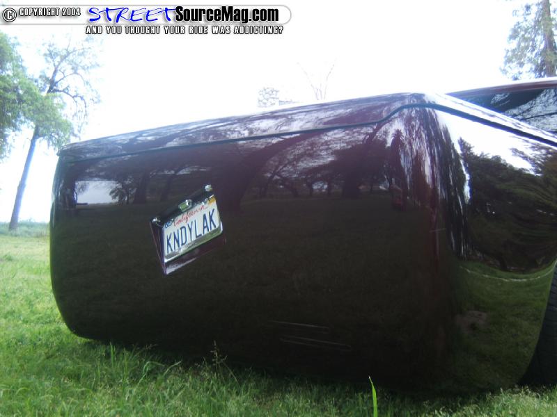 To replace the taillights he upgraded to a set of AVS L.E.D. taillights and molded the license plate box into the area where the tailgate-use to reside. He then converted the nose of the truck to that of a Caddilac Escalade and added a Gaylords Tonneau cover to give the truck it’s sleek look. Next the truck was fully sprayed in a kandy House of Kolor Brandywine.