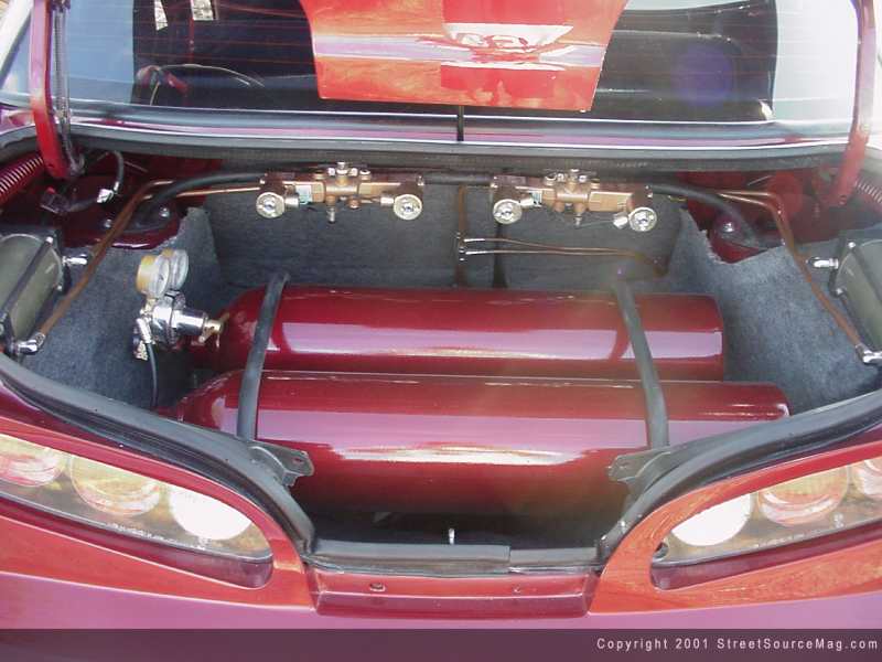 After the exterior of Michelle’s Neon was complete, it was time to move to the interior before moving on to the engine. To accomplish this, Michelle had the dash wrapped in leather by Crowes Upholstery of Rome, Georgia. Next, she installed white face gauges along with a carbon fiber pedal kit. Everything else including the seats was covered in burgundy leather material.  To roll the all show Neon to the events, a set of Autostrada 17 inch rims wrapped in 205-40-17’s BFG Scorchers were mounted up.