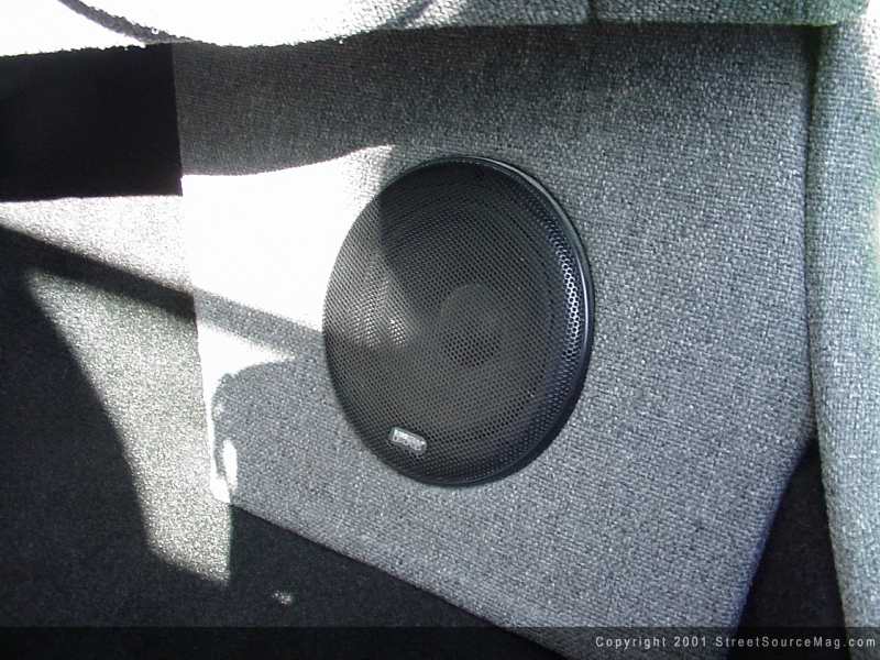 The decision of a Clarion pro audio CD player along with a Clarion pro audio EQ utilized the volume and clarity to the Soundstream mids and tweets. Rockford Fosgate amplifiers provided the power to the JL Audio 10W6’s. In the center council, Jason decided to locate the fuse block for extra eye candy for the judges.  | Even the trunk and stereo was wrapped and flamed with grey tweed. That is what makes or breaks the average show vehicle, that’s why Jason’s civic isn’t just average. |