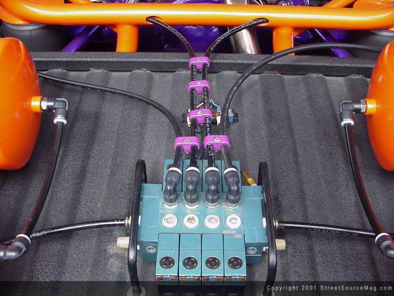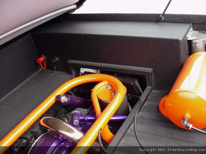 The battery was then relocated under the bed for added room in the engine bay. With keeping the clean look of installation, all of the air lines where ran through the frame rails. Taking up most of the engine bay you can find a set of 18x8 Arelli Kaz wheels protected by a set of 205/35/18 inch Nitto's. In the rear, the bed was tubbed out to fit the 20x8.5 wrapped in 215/35/20 inch rubber.