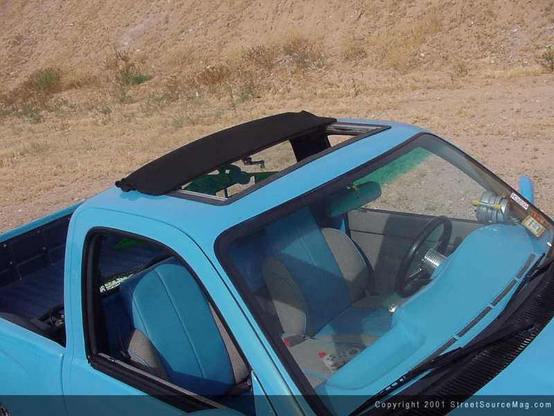 Moving towards the rear of the Taco meant nothing but more sheet metal to be change up. Stirting that direction, the door handles would be shaved along with gas filler door, which was relocated into the bed. The cab seams under the window where shaved smooth along with the antenna. Not totally happy with the progress, Mike decided to install a Street Beat sliding ragtop along with shaving the 3rd brake light and flush molding a LED strip. Matching up with the front fenders, the bedsides would be flared and rolled to allow room for the 18x7.5 KMC Units. The Units have been wrapped with a set of 215/35/ZR18 inch Falken tires for added protection.