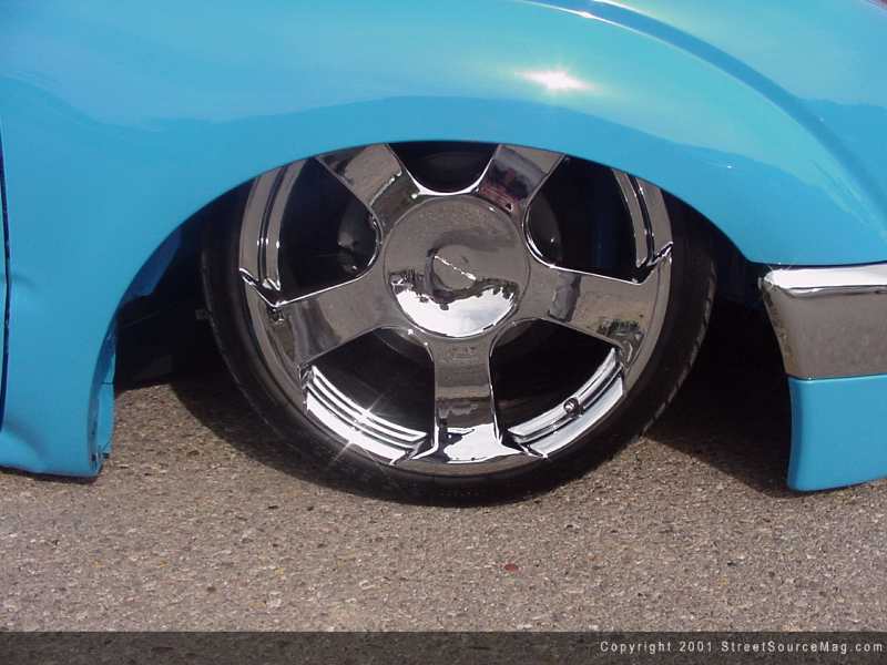 The tailgate was then smoothed out with a skin combo and molded to the bed for an over all smooth look. After many dragging episodes Mike found the Taco back down to Anaheim Prestige Auto body to rework the rear Alter Images skin combo after dragging it along the California roads. The taillights where shaved and a set of Hi Tech LED's, which were designed by Mike, and were flush mounted into the roll pan. Mike performed most of the long list of modifications. Chris and Eurocraft Collision of Middletown, NY, are responsible for the taillights, gas filler door, cab seams and corner lamps.