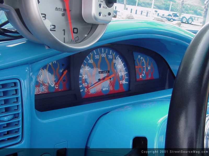Looking around the interior, you will also notice an Autometer tachometer along with a set of NU image gauges set behind the Grant GT steering wheel. Since Mike can't wait for 4th of July for firework displays, he finds himself driving the Taco from time to time. While driving around one would need tunes, so for he's cruising purpose, an in-dash Alpine flip down CD player would be installed. Bringing the sound forthright, a set of Rockford Fosgate mids and tweets would be installed. Mike himself is responsible for the wiring that was performed.