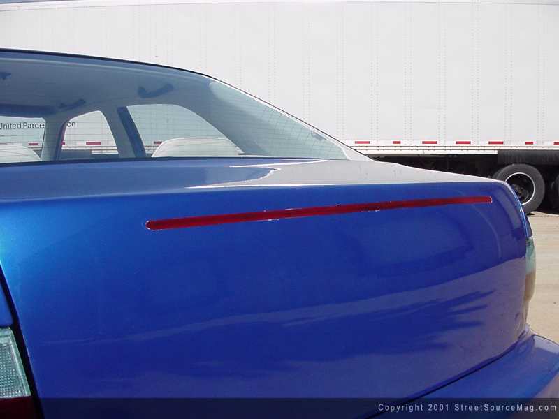 Getting things moving in the correct direction wouldn't be hard for JD with the help from his father who previously stated, is active in the Rodding community. Starting in the rear, the trunk lid was shaved of the license plate box, inner taillights, keyhole, and emblem. The license plate was then frenched into the rear bumper. Helping clue people in on when JD was on the brakes, they decided to mold a 3rd brake light into the trunk lid.