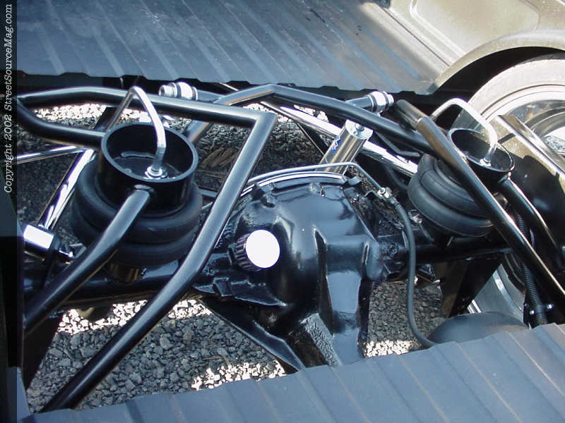 Starting with the rear end, the frame rails would be tubbed, boxed, notched and painted. Next a Pete and Jakes reverse triangulated 4-link would be installed to help the airbag set up bring the S-10 to the ground. Ensuring a good ride, Hal Billet QA1 shocks would be installed.