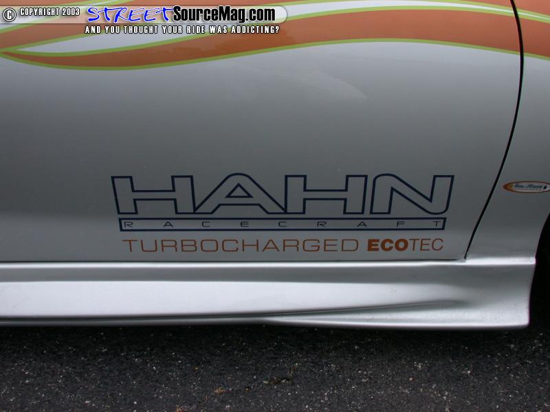 The front mount intercooler is a Hahn RaceCraft exclusive design with an integrated return chamber allowing for more efficient cooling of the charged air. Nitrous Express single port Nitrous System with a 100 hp shot of nitrous would then be applied to spool the turbo quicker getting rid of un-needed lag. The car also sports brakes from Stainless Steel Brake Company. An Optima battery was then installed by RBCM.