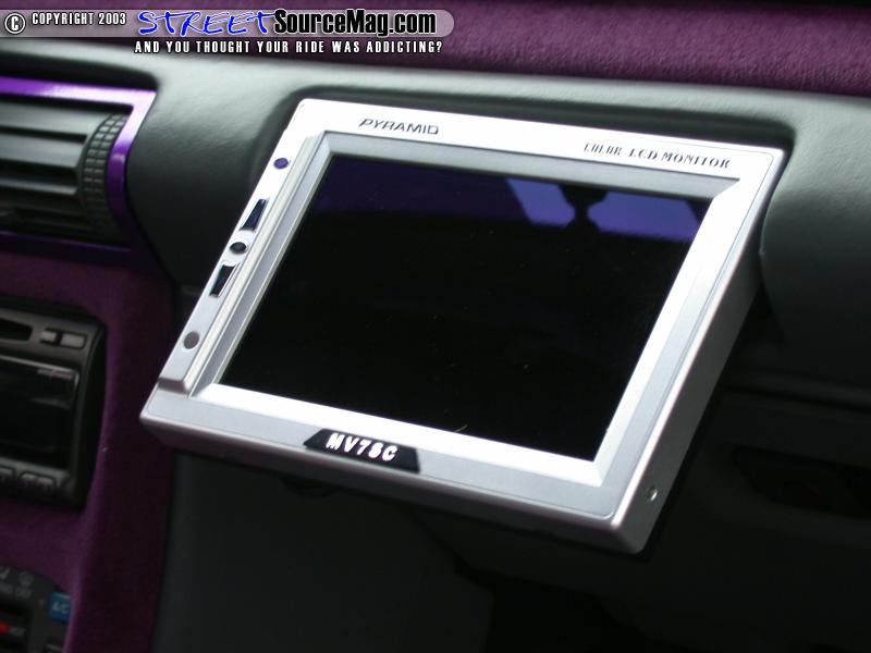 Feeling his stock GM CD player would work well with his needs, the would just install a Pioneer EQ to help adjust the sounds. The Sony amplifiers that help push the speaker set up would then be painted purple to match the exterior.  You will also find a 7.2-inch monitor in the dash with a DVD player in the glove box. A 5-inch TV monitor is also located into the rear of the center console.
