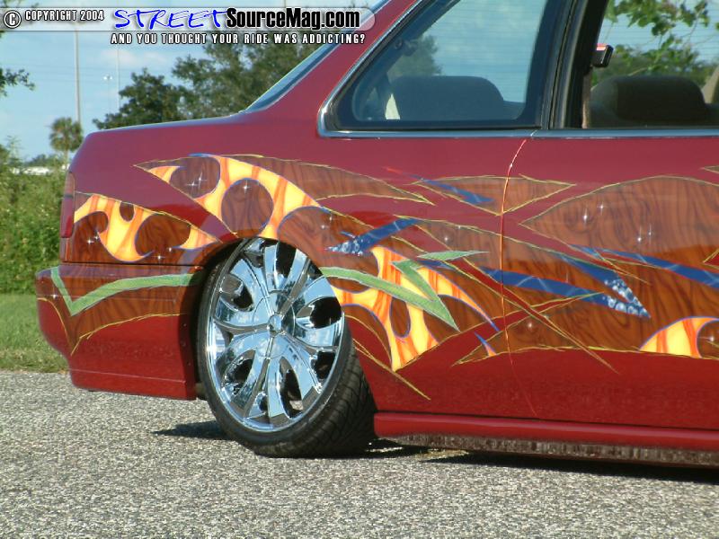 Josh would use Blitzluft air cylinders with (8) ½ inch Blitzluft valves, 10 switch box, chrome 9 gallon 8 port tank and a Viar 450 to bring the Accord to his desired ride height. The use of a polished sway bar helps keep things balanced around the turns.