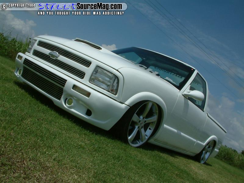 Continuing with the shaved items Alvin would be rid of the gas filler door, taillights, hood squirters, antenna and 3rd brake light. While the taillights are found replaced by a set of LED’s, the headlights would also be replaced by a set of ’97 Blazer headlights. To finish off the exterior modifications Alvin would have a Trader bed cover and wiper cowl cover installed along with a Power sunroof for those sunny Island days.