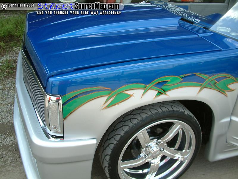 The front bumper would be fiberglassed along with a fiberglass roll pan molded to the Blazer body. Moving on with the modifications the door handles would be shaved along with the gas filler door, which would be relocated into the factory jack location. The headlights would be recessed 2” and the taillights would be shaved and replaced with a set of ’91 Cadillac lights.