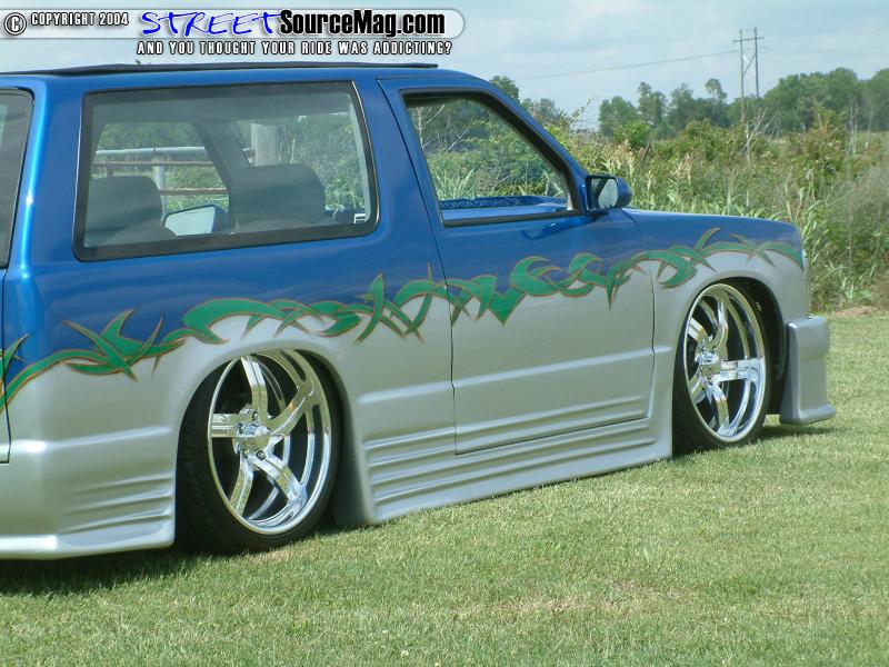 The body lines, emblems, antenna, wipers, tailgate handle and roof rack would all be shaved while a set of ground effects would be molded to the body. Flush mount LED’s would be installed for turn signals in the front bumper while a 67”x40” Street Beat sliding ragtop occupies the roof. Brian with help from Jay Lucey would take on all of the bodywork.