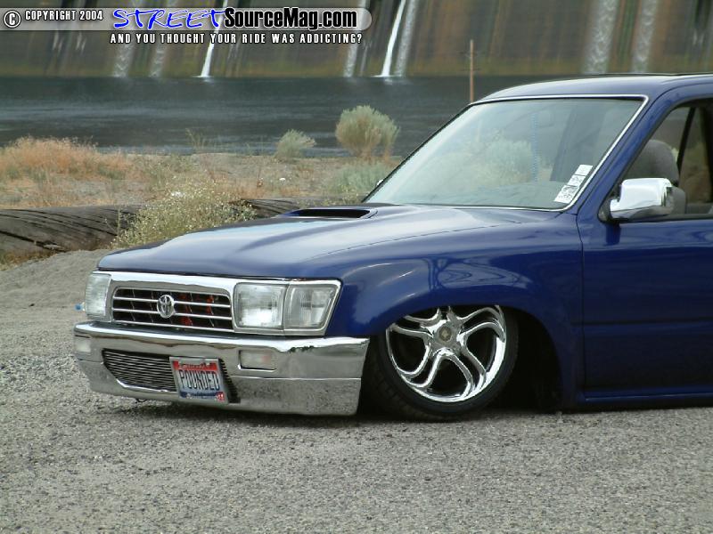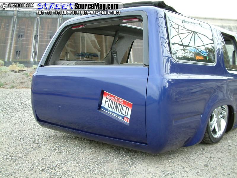 Keeping things different, the rear doors where shaved of the door handles while the front where replaced by a set of ’95 Altima door handles. Moving back the gas filler door would be shaved and moved behind the rear gate while the gate handle would receive the same shaved treatment. Rounding out the rear the taillights would be shaved and replaced by LED’s and a custom roll pan would be molded in.
