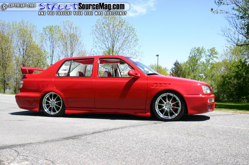 The exterior of the car features shaved door handles and moldings on the doors. The trunk was shaved and small reverse lights with VW covers were frenched in along with a frenched in license plate. Out back a set of all clear taillights were installed.