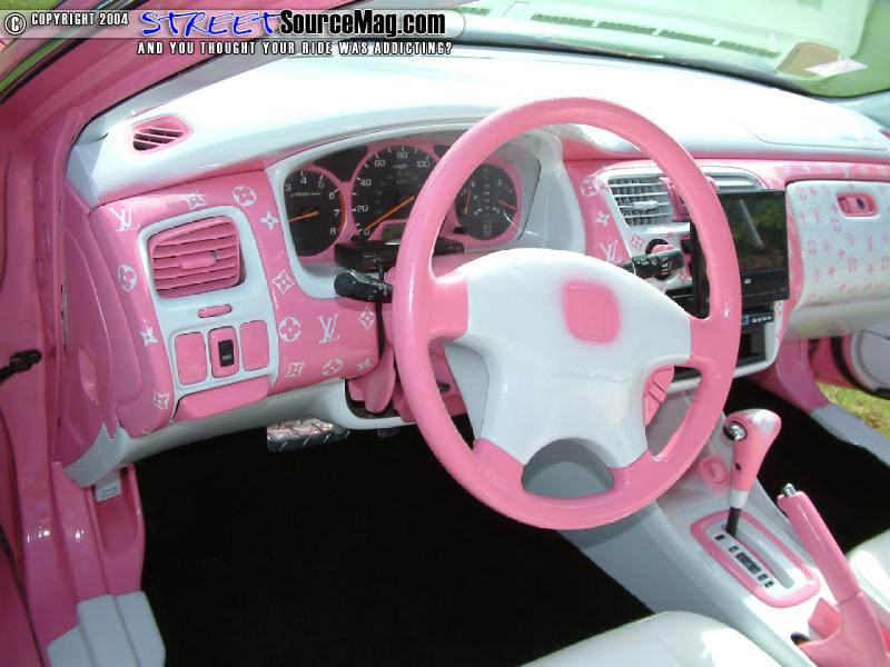 Moving to the inside of the Accord you’ll find an array of Louis Vuitton pink blossom material. The dash with some pieces wrapped and some painted would be the beginning of the ventures. Next the doors and headliner would be wrapped along with other interior panels.