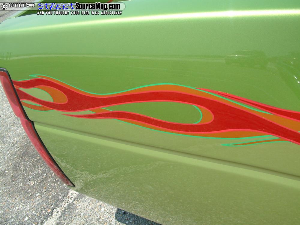 To break up the new two-tone paint Travis would look to Chad “Snapper” MacDonald from Never Satisfied Customs for his expertise. The colors used would be a candy red/orange and stripped with red and lime green.