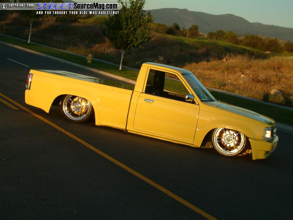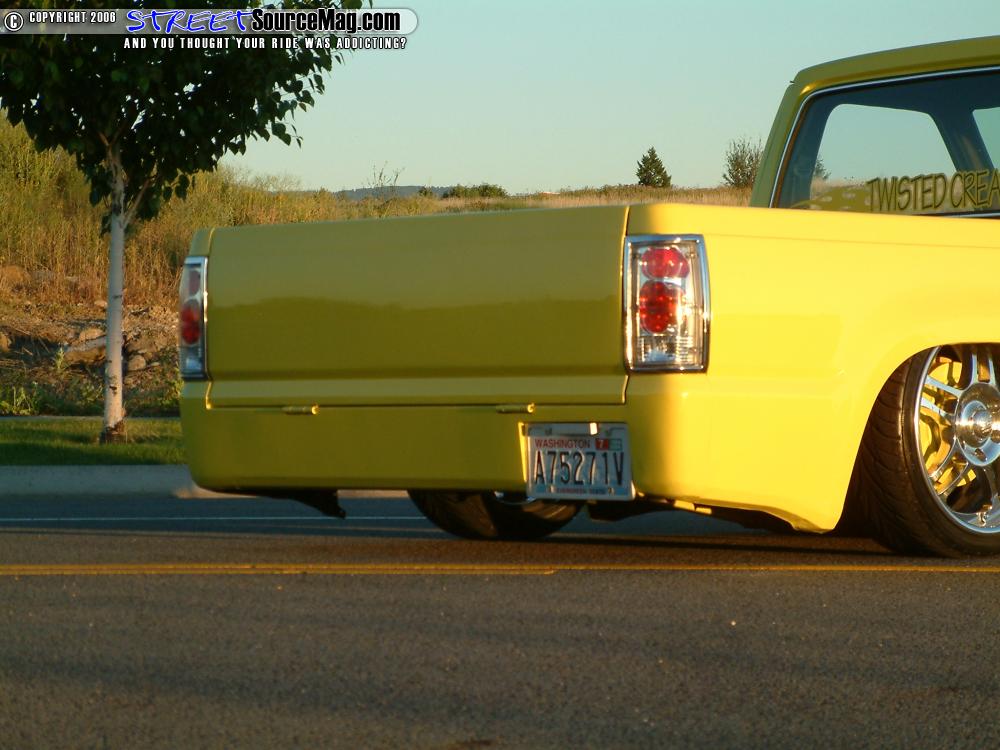 Other notable bodywork would be items such as shaved tailgate handle, emblems, key locks, antenna, pillar vents, bed stakes and smoothed cowl. S&R Customs of Lacey, WA, would perform bodywork. With the body all smoothed to Kenny’s liking he would then turn to Kevin Post of Puyallup, WA to spray down the PPG ’92 MR2 Signal Yellow.
